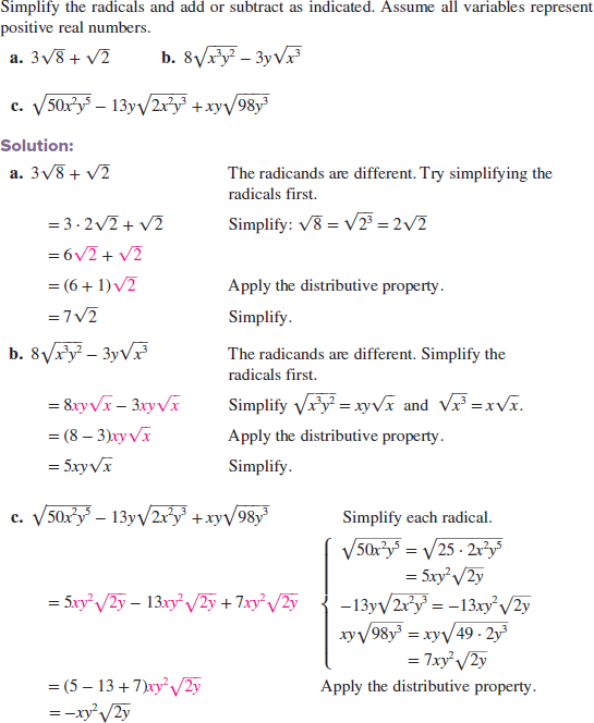 After solving for parentheses exponents and radicals and before adding and subtracting. Add or subtract to simplify radical expression. Simplify by adding andor subtracting the radical expressions below.